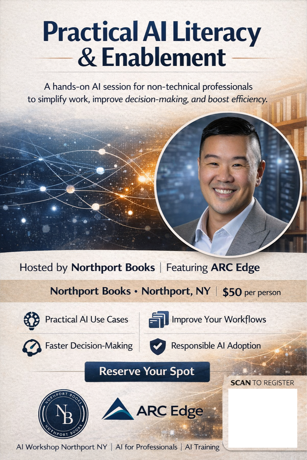 Join ARC Edge Consultancy founder Greg Camp at Northport Books for a focused, small‑group session designed to help you simplify operations, make better decisions, and reclaim time across your business.